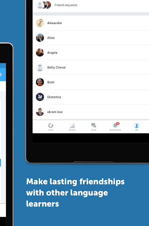 Become a member of the busuu Community and have your speaking and writing exercises corrected by native speakers. Plus, you can help others in your native language!