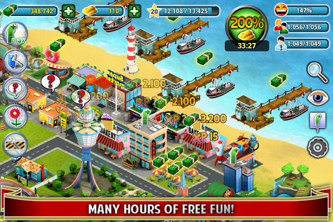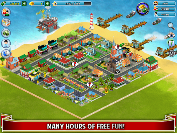 Discover and expand your hermosa island like robinson crusoe, build a city and beach life in a virtual world full of quests and pirate chests, where you were marooned and now have the power to build a lot of different structures with a choice of 100+ unique buildings, like hotels, cinema's, offices, transport, township, restaurants, and even oil platforms on your paradise island. Start with a tiny city and grow it into a large megapolis. Catch some fish with your boats, find pirate chests, make your townsmen happy by building parks, beach huts, transport, churches, libraries, museums, plants, and even a nice ferris wheel. It is all about insight and balance in this city town game: happy people attract more citizens, who will need residences and jobs. You have all the power in this epic story: discover what is the best way to be a successful entrepreneur in this fabulous virtual world!